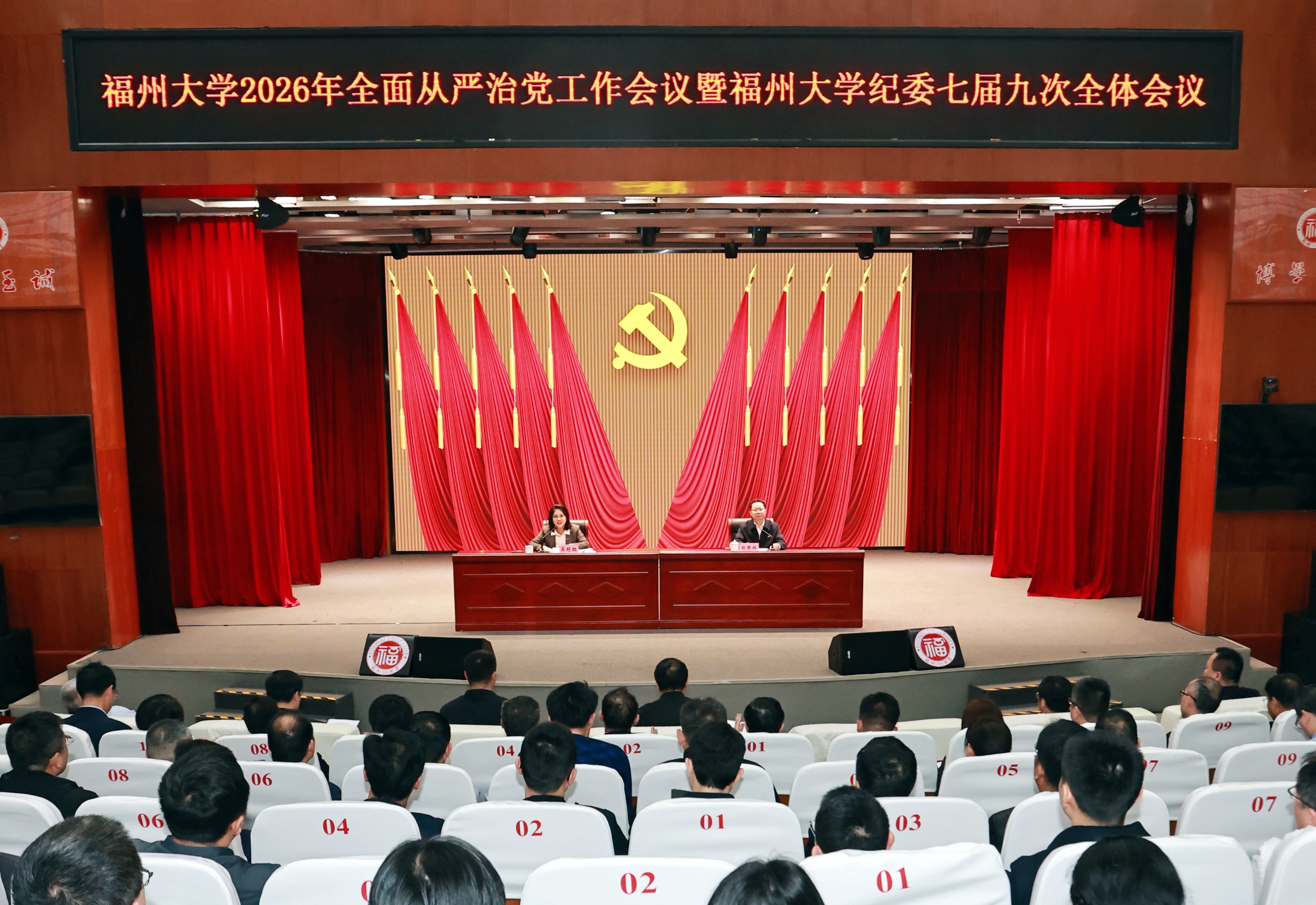 融媒中心讯/3月18日下午,beat365平台官方网站2026年全面从严治党工作会议暨中共beat365平台官方网站第七届纪律检查委员会第九次全体会议在图书馆博学厅召开。校领导吴明红、杨黄浩、王心晨、郑煦林、张亚雷、江莉龙、邱挺、卢孝强出席会议。会议由校纪委书记、监察专员郑煦林主持。会议的主要任务是深入学习贯彻习近平新时代中国特色社会主义思想,全面贯彻落实党的二十大和二十届历次全会精神,按照二十届中央纪委五次全会、省纪委十一届六次全会以...